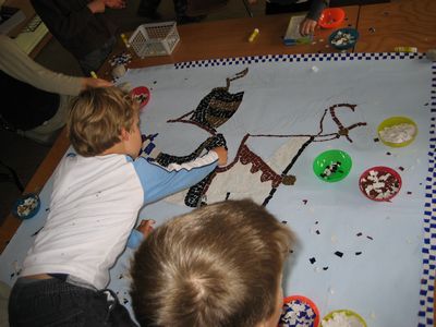 Mosaik des Brezenreiter®, gestaltet von Erst- bis Viertklässlern zum Münchner Stadtgeburtstag