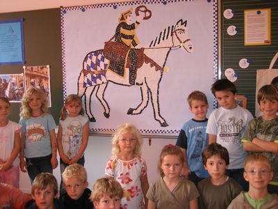 Der Bezenreiter ist eines von 16. Themen zum 850. Stadtgeburtstag der Grundschule an der Pfarrer-Grimm-Straße ist der Brezenreiter®. Seine Geschichte und sein diesjähriger Auftritt waren das Thema, das die Kinder der Grundschule mit viel Eifer künstlerisch umgesetzt haben. Wir freuen uns, dass wir das Projekt unterstützen konnten und danken den Kindern und natürlich der Konrektorin, Frau Schwinger, für dieses tolle Engagement! Natürlich ist es für uns schön zu wissen, das wir mit dem Brezenreiter® eine Münchner Figur wiederbelebt haben, die nicht nur bei geschichtlich Interessierten, sondern bei wirklich allen großen Zuspruch findet. Herzlichen Dank dafür! Aber jetzt lassen wir die Kinder durch ihre Arbeit erzählen...